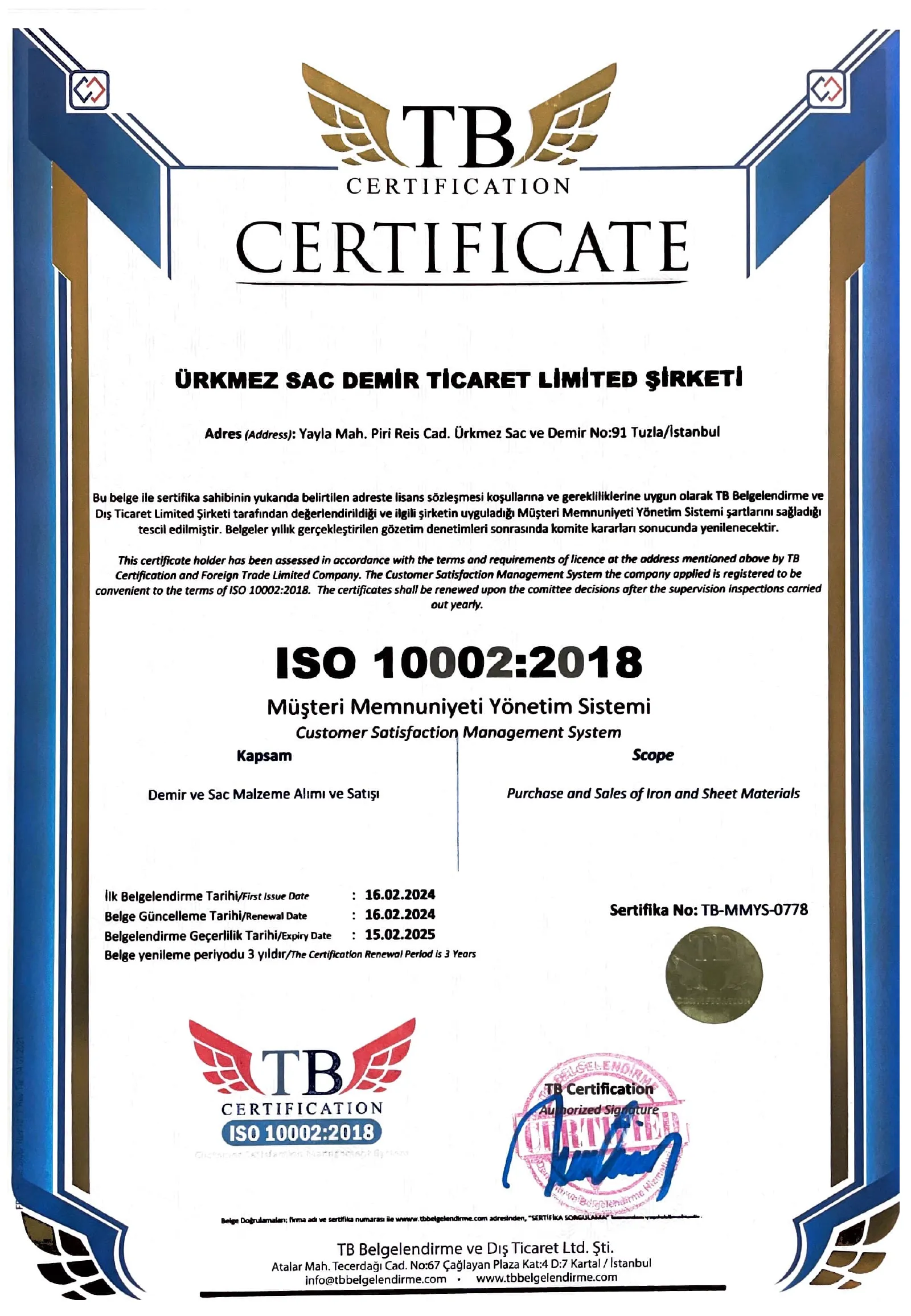 Ensuring the unconditional satisfaction of our customers in the sheet iron, steel and profile industry with the supply of products of the desired quality on time and in the desired quality both in domestic and international markets and with after-sales support.